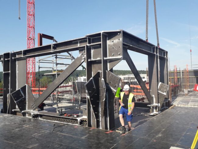 Hier haben wir Stahlkonstruktionen für den Bau eines 28-stöckigen Hochhauses gefertigt und montiert. Auftraggeber von uns war hier Stahl + Verbundbau, die Baufirma vor Ort mit der wir zusammen gearbeitet haben war August Prien.