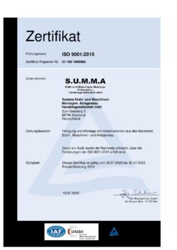 Die Firma S.U.M.M.A besteht seit 40 Jahren und hat in dieser Zeit für namenhafte Unternehmen Aufträge im Stahl-, Konstruktion-, Anlagen und Fahrzeugbau ausgeführt und sich dabei als zuverlässiger Partner erwiesen.